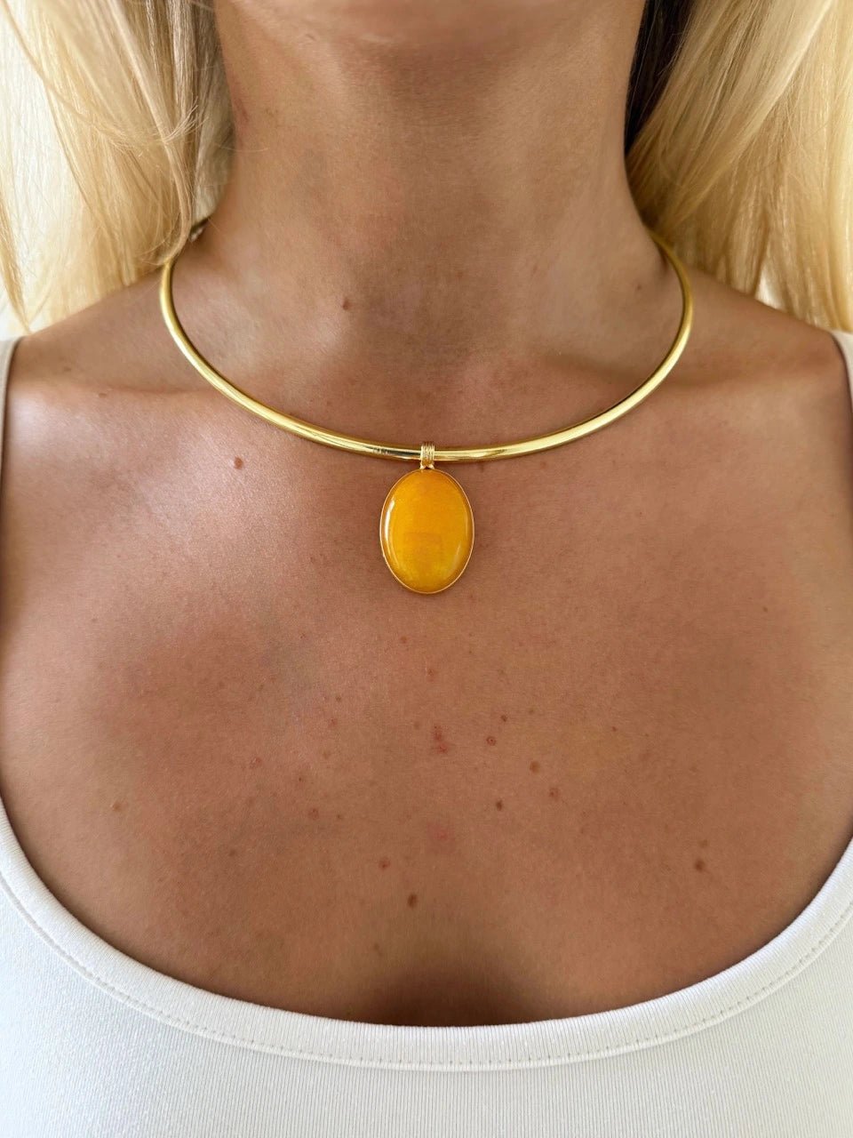 With this necklace on, you suddenly think today is the day to start a new personality. The yellow stone does that. That’s Lumi.
