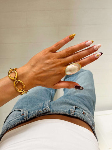 Mar is our chunky girl, and she looks sooo good. A true pearly statement piece. Wear her on her own for a elegant look, or create a magical stack around her.